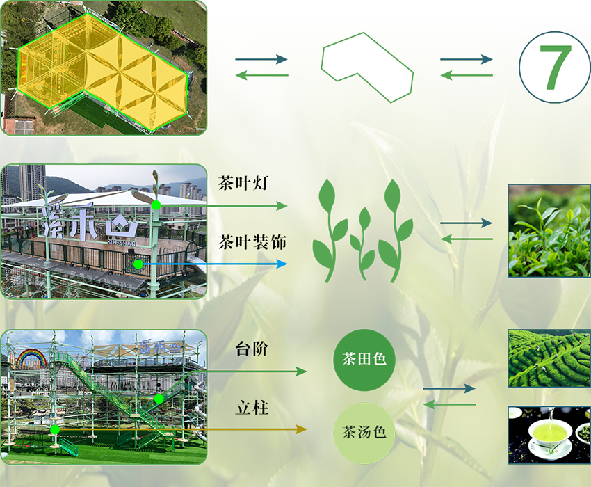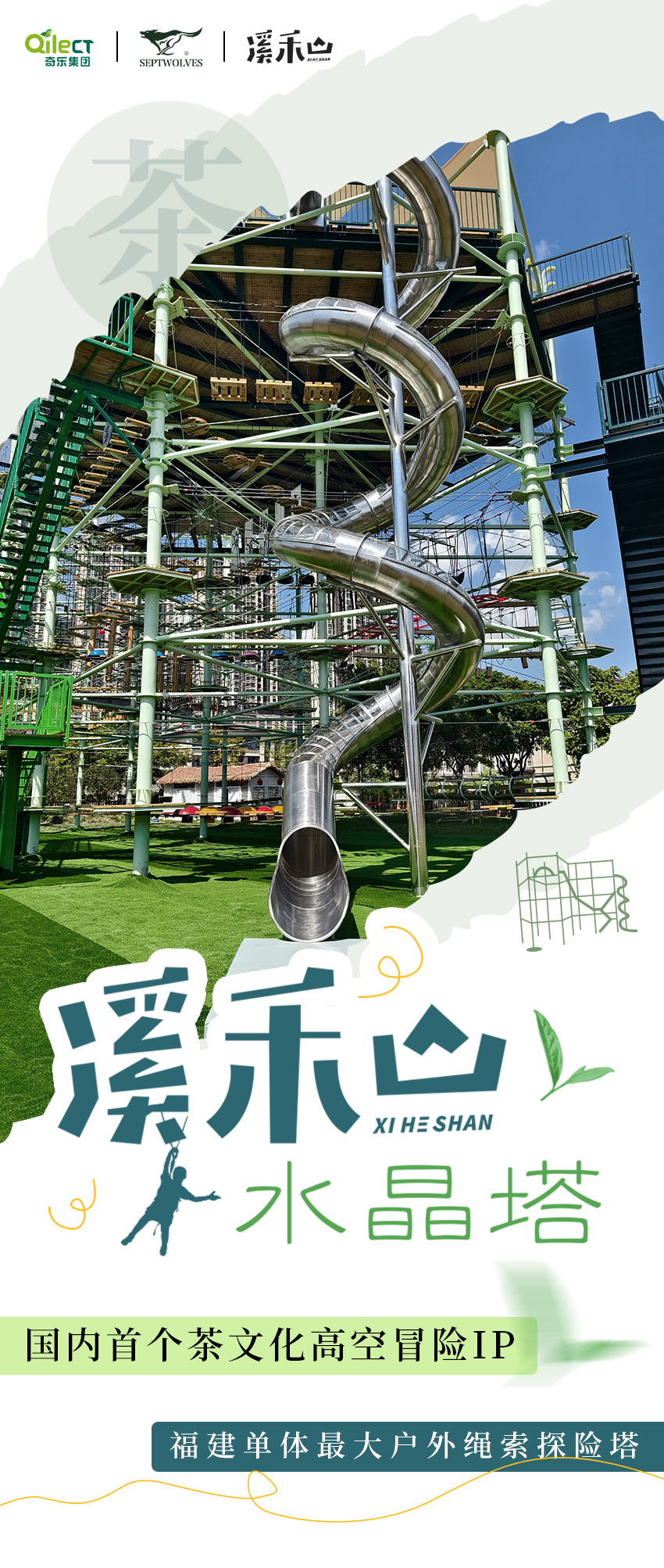 應(yīng)溪禾山邀請(qǐng),在園區(qū)內(nèi)打造一座以茶為靈感、以勇氣為內(nèi)核、具有區(qū)域名片效應(yīng)和市場(chǎng)經(jīng)濟(jì)價(jià)值的首個(gè)茶文化高空冒險(xiǎn)IP——溪禾山水晶塔。