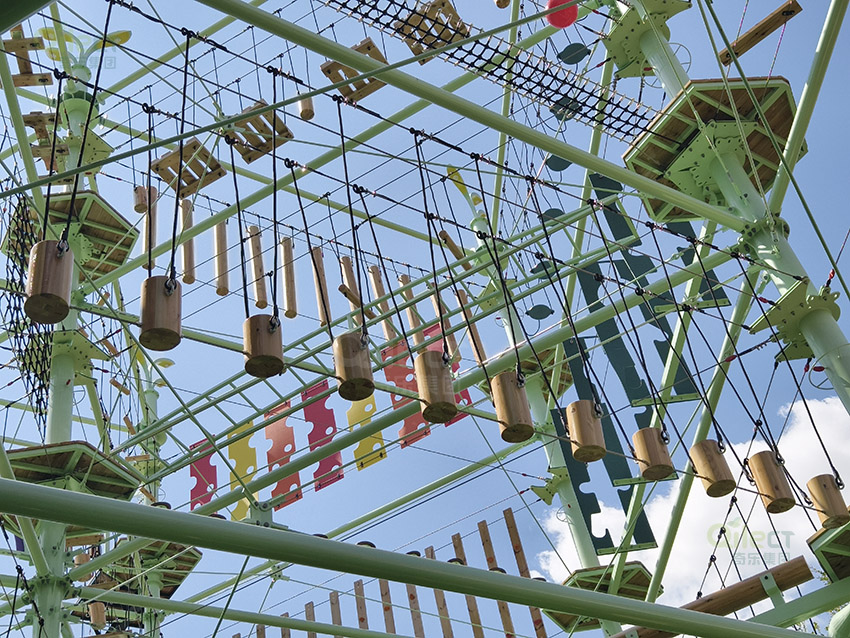包含忍者叢林、直排吊環(huán)、腰馬合一、一馬平川、垂吊藤椅、奶酪攀巖、騎虎難下、彩虹橋、腳步吊環(huán)、臂力驚人、云羅天網(wǎng)、一鳴驚人、高空速降等18個(gè)高難度項(xiàng)目。