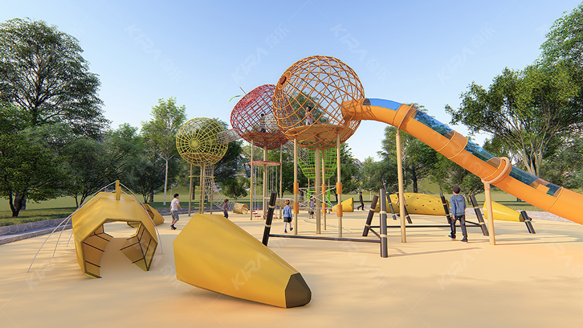 本項(xiàng)目適用于各種親子主題類的樂園,巧妙運(yùn)用“熊貓”IP造型設(shè)計(jì),集拓展、探險(xiǎn)、滑道、飛索、蹦極、不銹鋼滑梯、攀巖、爬網(wǎng)等46種不同運(yùn)動(dòng)體驗(yàn)的文化主題項(xiàng)目,結(jié)合“大灰熊”IP形象,融入相關(guān)設(shè)計(jì)元素,打造差異化的網(wǎng)紅IP主題性運(yùn)動(dòng)拓展?fàn)I地綜合體。 在裝飾設(shè)計(jì)上采用竹葉和竹竿的綠色設(shè)計(jì)元素,以原生態(tài)、自然風(fēng)格為基調(diào),采用原木、繩網(wǎng)和不銹鋼等柔韌度好的生態(tài)材料。滿足大眾貼近自然、主題鮮明、寓教于樂的兒童素質(zhì)訓(xùn)練教育親子樂園的精神訴求。